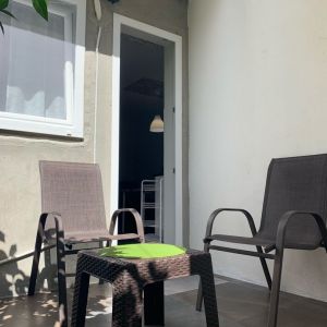 Балкон выходит в тихий и закрытый садик. Солнце освещает его только во второй половине дня, что дарит желанную прохладу в жаркое время года.